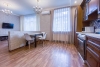 Прихожая , ванная комната , гардеробная комната ,гостиная студия с кухней+ столовой ,спальня с отдельной рабочей зоной .