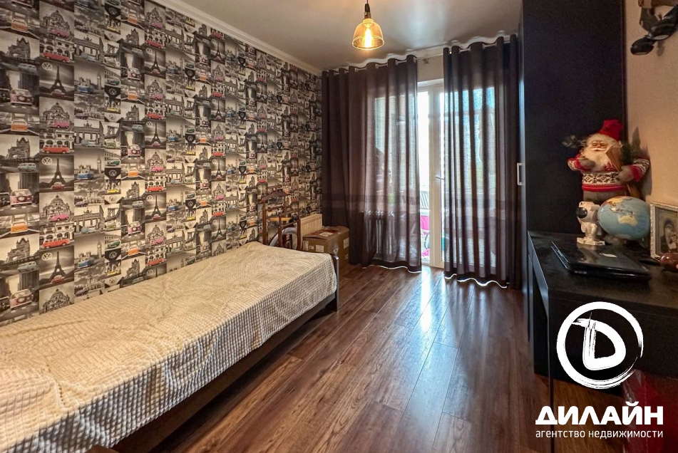Передпокій, їдальня, кухня, дитяча кімната, вітальня, господарська спальня з еркером, ванна кімната з сан.вузлом, спальня з балконом, сан.вузол