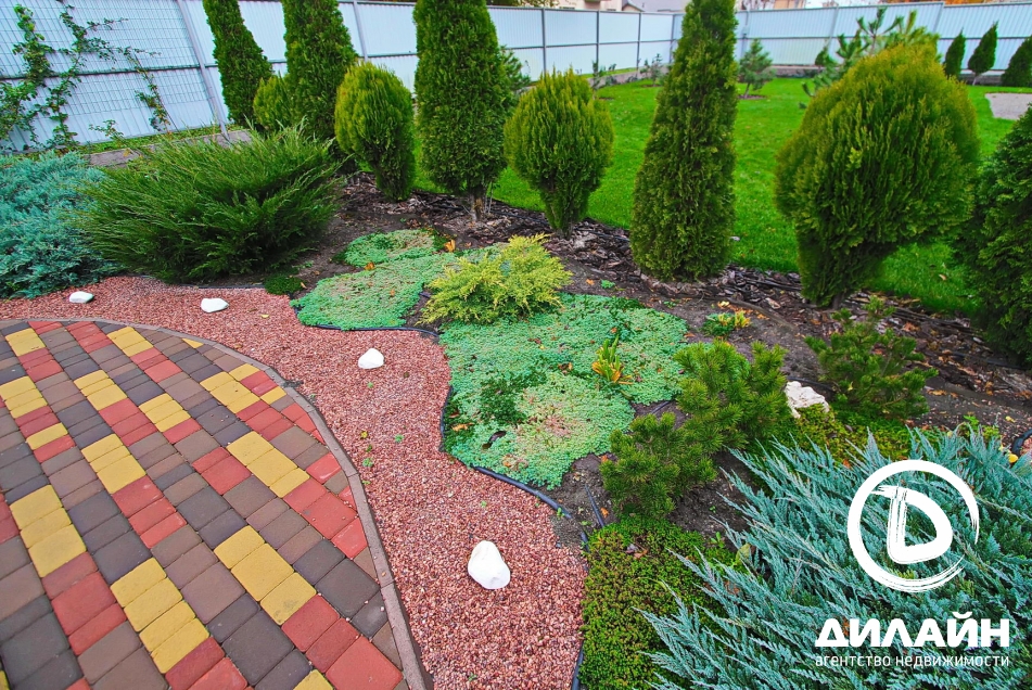 Замечательная , утопающая в зелени хвойных растений территория. Площадь 10сот, полностью огороженный участок. Ландшафтный дизайн, автоматический полив, детская площадка, барбекю зона, навес для 3 машин.