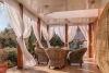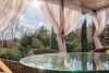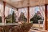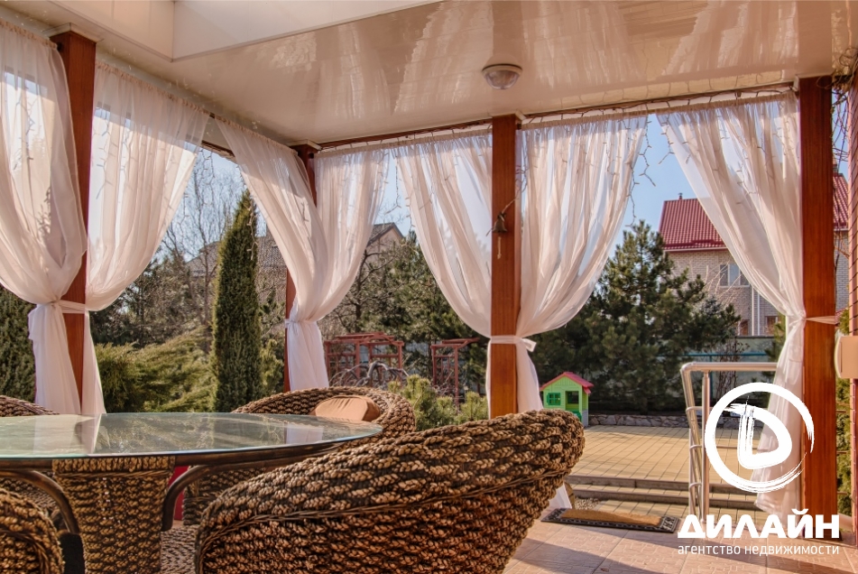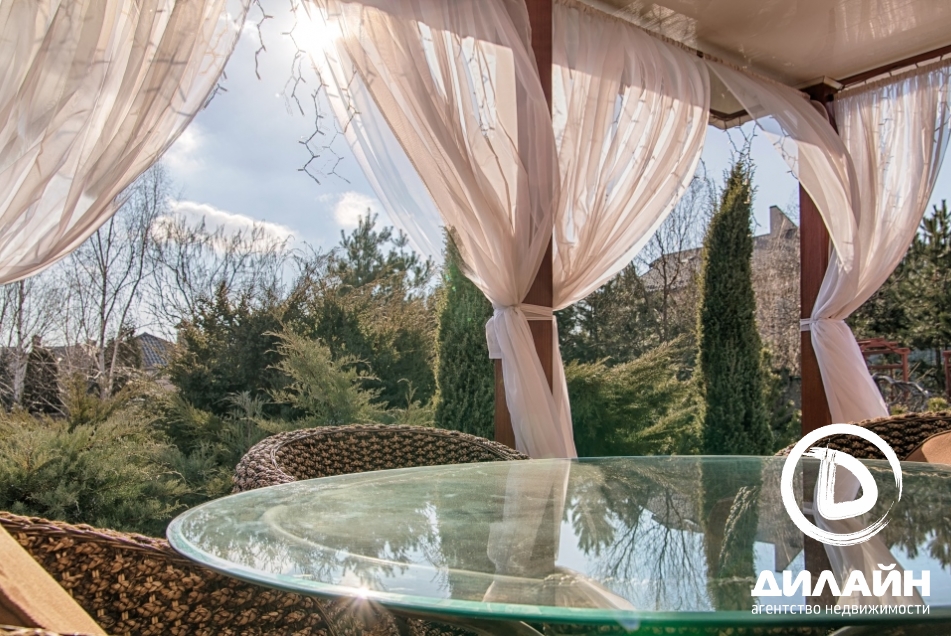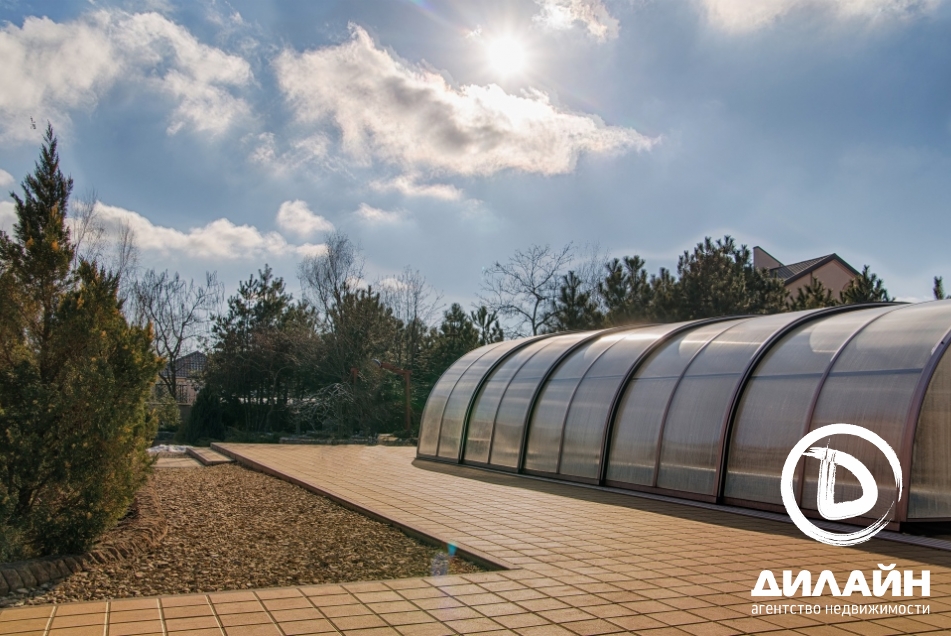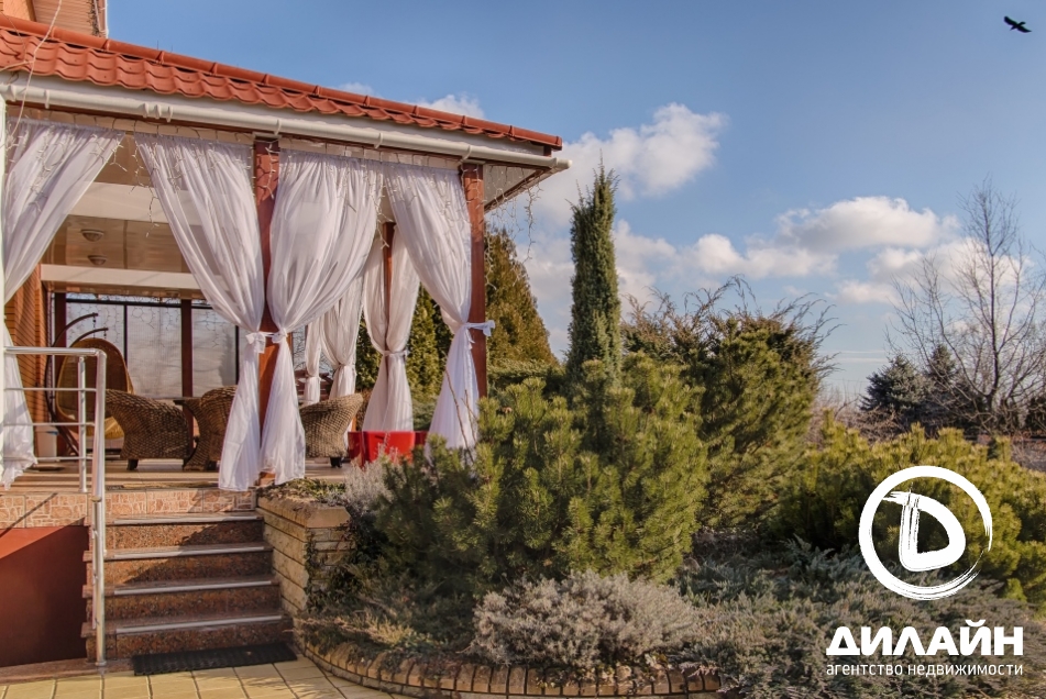 Огромная территория, утопающая в зелени, на которой разместилась беседка, окруженная соснами, бассейн, просторная крытая терраса с панорамным видом, зона - барбекю, лужайки, альпийские горки и плодоносный сад. Эти несомненные преимущества придают дому уникальность.