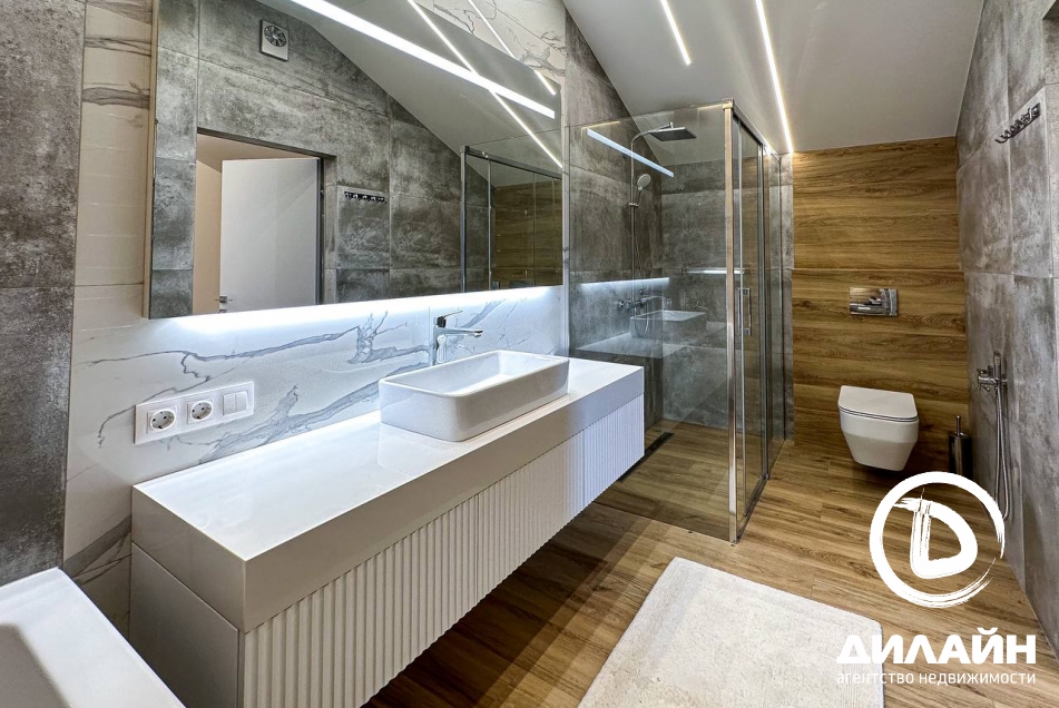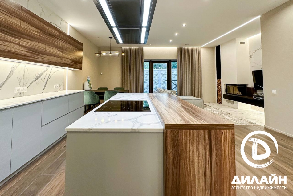 Площадь 120 м2 , постройка в 2 этажах . Выполнен очень качественный ремонт по дизайн проекту - только дорогими стройматериалами . Утстановлено электро котел , теплые водянные полы , приточно - вытяжная вентиляция , кондиционеры . Вся мебель и техника абсолютно новая .